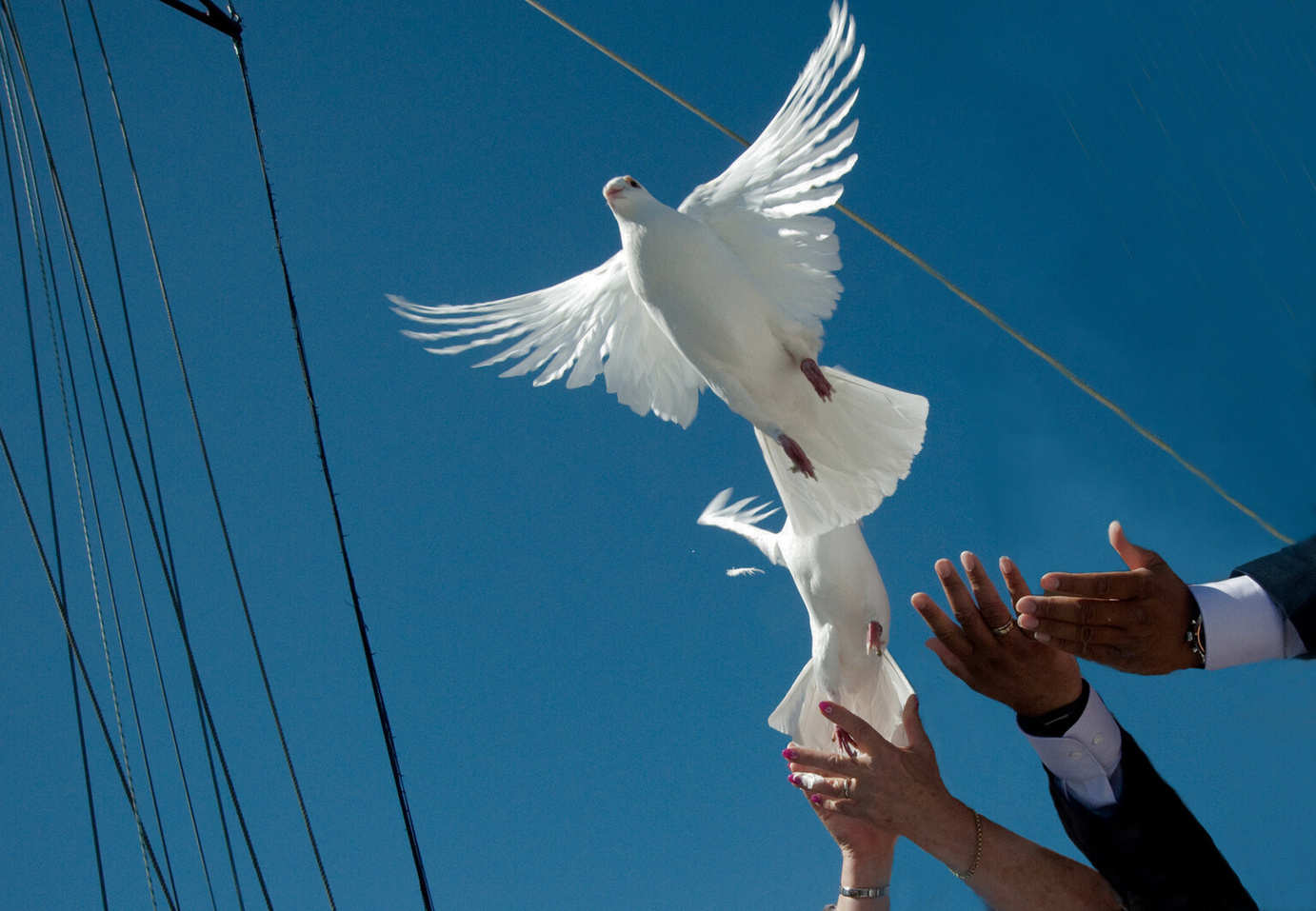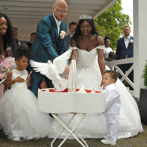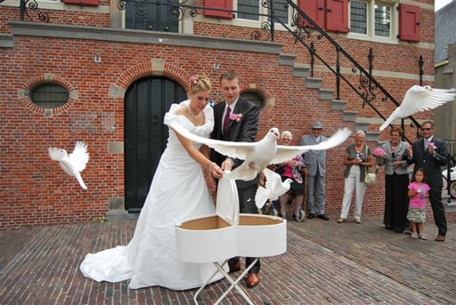 Wat is er romantischer dan het loslaten van witte duifjes op jullie bruiloft? Wij zorgen voor 7 witte duifjes - het perfecte aantal voor volmaaktheid! Maar, we passen ons graag aan jullie wensen aan, dus meer of minder duiven kan ook! Onze duifjes zijn postduiven en geen sierduiven (die de weg naar huis niet meer weten). Ze komen dus altijd weer veilig thuis.